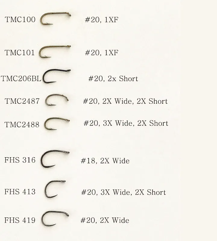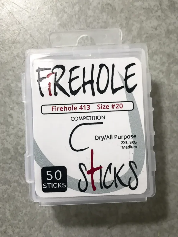 The hook used in the photo above is a Firehole Stick 413 #20. These are seen below.
